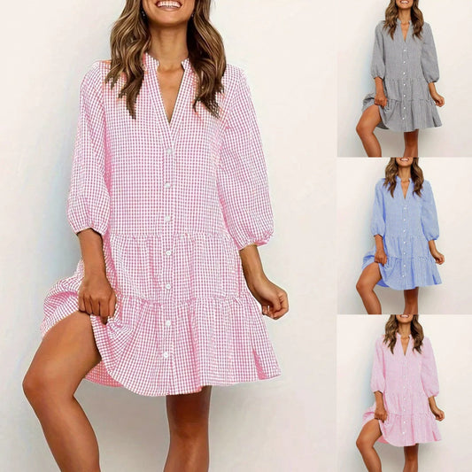 Casual geruite jurk met knopen voor dames