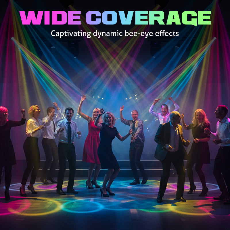 GEÏNTEGREERDE BIJENOGELENS - De centrale bijenooglens produceert een betoverend wash-effect met meerdere scherpe stralen. Het voegt diepte en complexiteit toe aan je lichtopstelling en levert professionele visuele effecten voor podia, clubs en feesten.