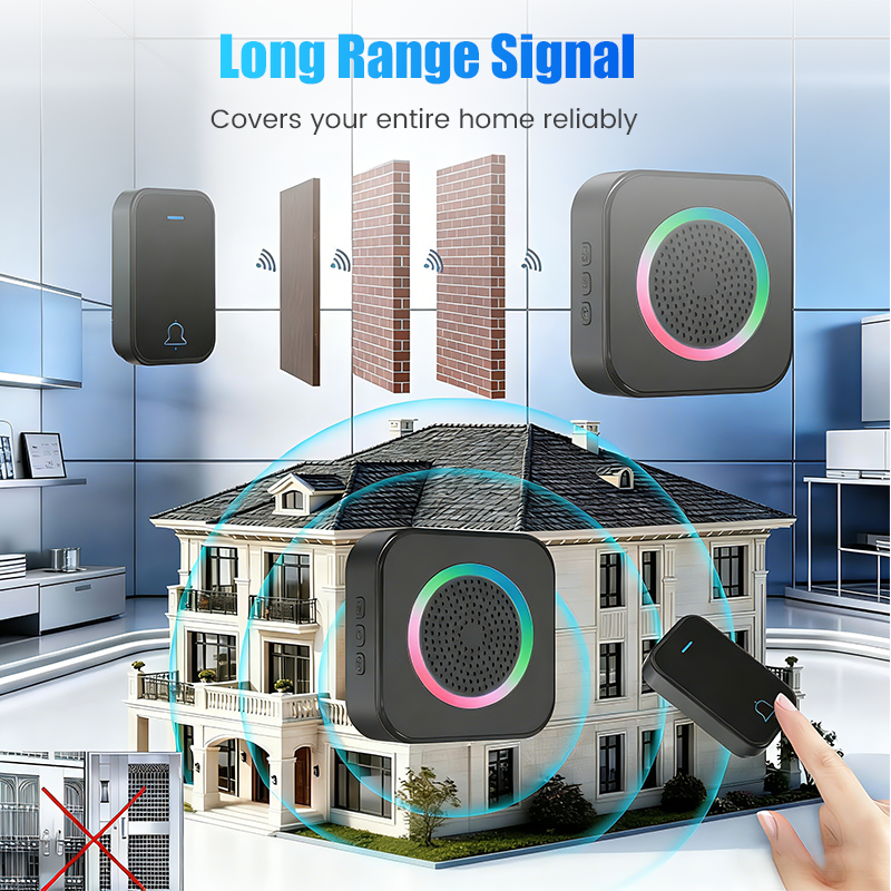VISUELE LED-LICHTALARM - De ontvanger is voorzien van een heldere, kleurrijke LED-indicator die knippert wanneer de bel wordt geluid. Deze visuele waarschuwing is ideaal voor lawaaierige omgevingen, tijdens feestjes of als essentieel hulpmiddel voor slechthorenden.