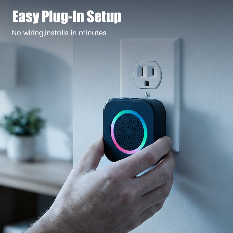 MOEITELOZE DRAADLOZE INSTALLATIE - Steek de ontvanger gewoon in een standaard stopcontact en bevestig de zender met lijm. Er is geen ingewikkelde bedrading of professionele hulp nodig, zodat u binnen enkele minuten klaar bent om aan de slag te gaan.