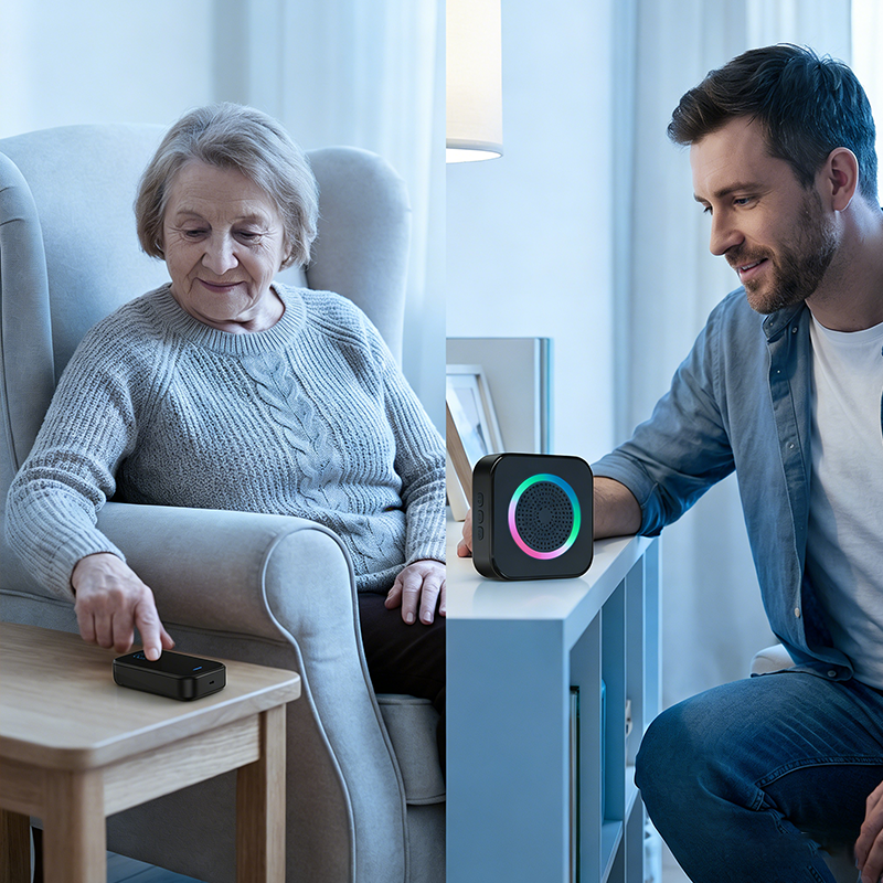 MULTIFUNCTIONELE NOODALARM - Dit apparaat is meer dan alleen een deurbel. Het dient ook als handige pieper voor ouderen, zwangere vrouwen of kinderen, waarmee ze met één druk op de knop hulp kunnen inroepen.
