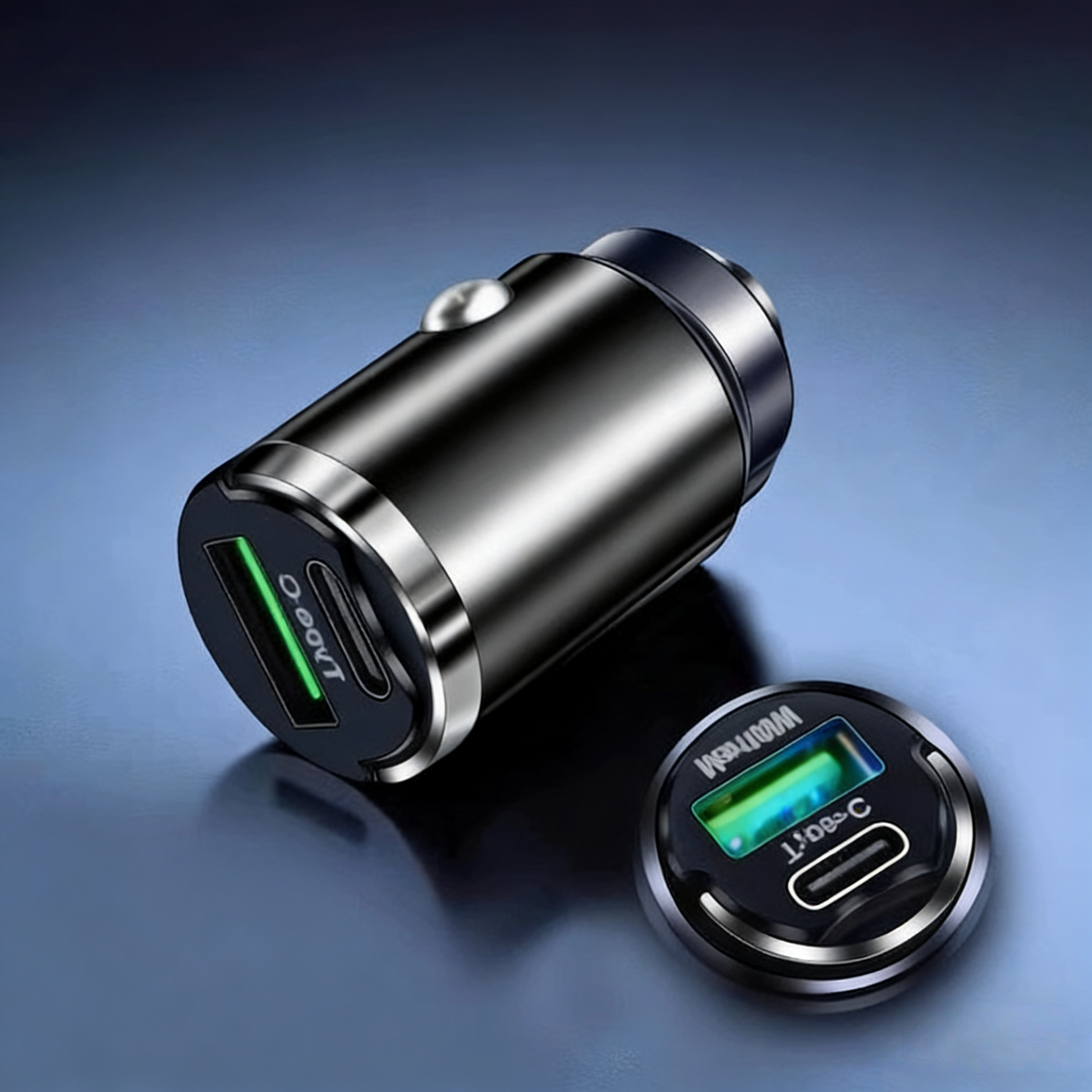 DURAZAME ZINKLEGERING CONSTRUCTIE - Vervaardigd van hoogwaardige zinklegering, is deze auto-oplader niet alleen stijlvol maar ook gebouwd om lang mee te gaan. Het robuuste materiaal zorgt voor duurzaamheid en maakt het een betrouwbaar accessoire voor dagelijks gebruik.