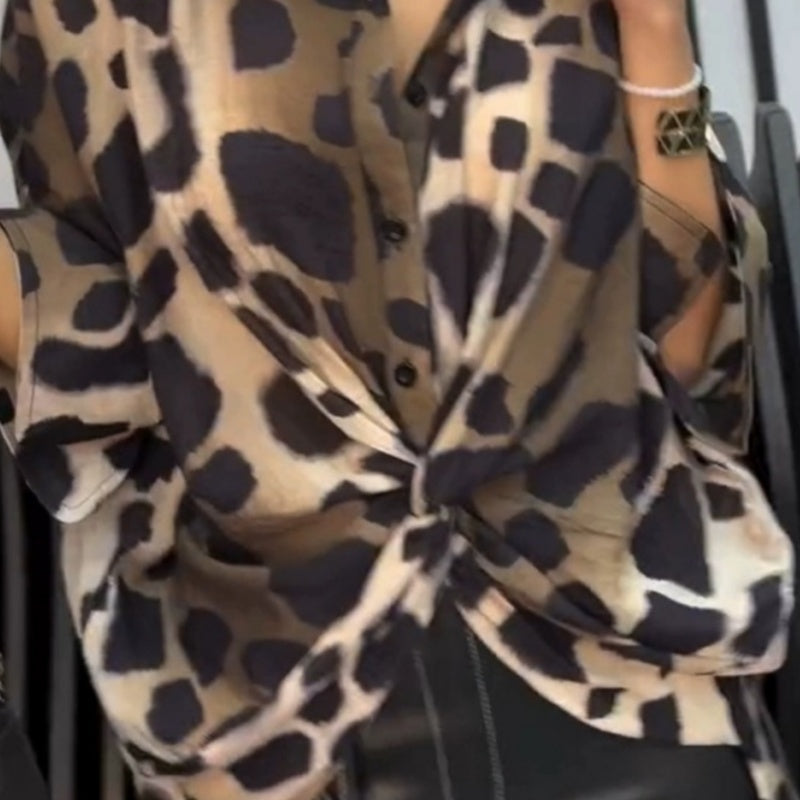 Bereik van levering: 1 * Loose shirt met drie -quarter mouwen, luipaardpatronen en shirt kraag