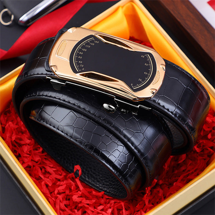 GEELECTROPLEERDE AUTOMATISCHE SLEUTEL: De gestroomlijnde gegalvaniseerde gesp zorgt voor langdurige glans en duurzaamheid. Het automatische ontwerp zorgt voor eenvoudige afstelling en levert een perfecte pasvorm met een soepele bediening voor elke tailleomvang.