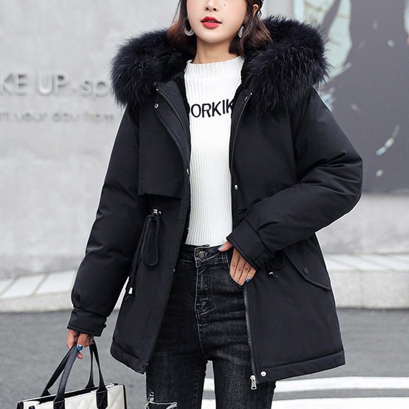 1*Ruime winterparka met capuchon voor dames van dik synthetisch fleece