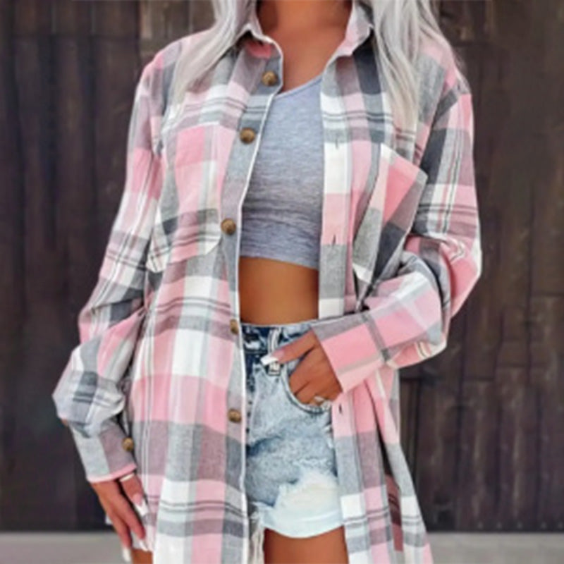 1 * Losvallend geruit damesoverhemd met lange mouwen